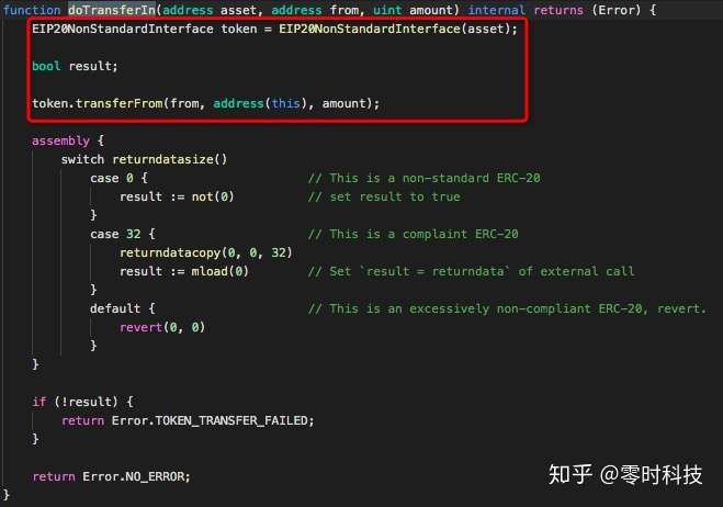 在更新用户余额之前,supply调用了 doTransferIn 函数,跟进 doTransferIn 函数: