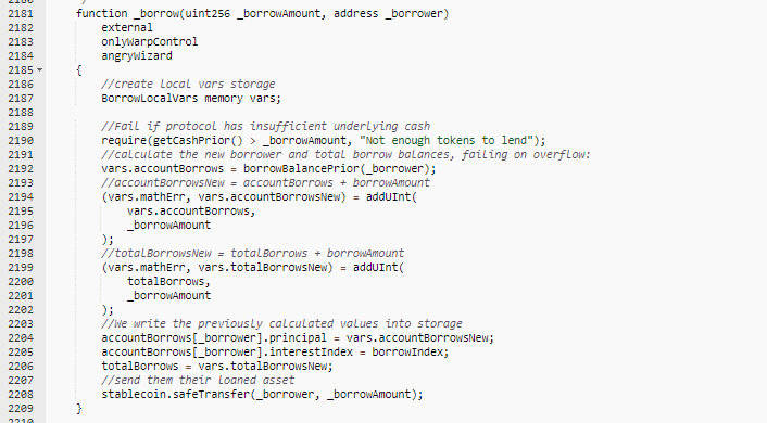 此后,攻击者即通过调用以下函数进行贷款。