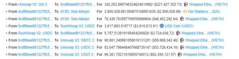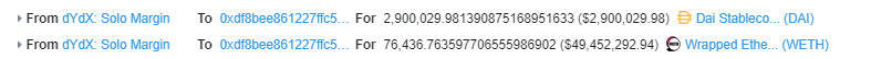 其后,为扩大用于攻击的资金量,攻击者又在dYdX进行了闪电贷借款。如下图所示: