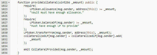 然后,将所获的LP代币抵押在Warp Finance合约中,交易及代码如下图: